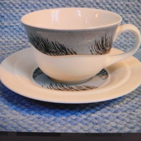 Arabian merituuli-sarjaan kuuluvat teekupit ja lautaset. Neljän kappaleen setti.