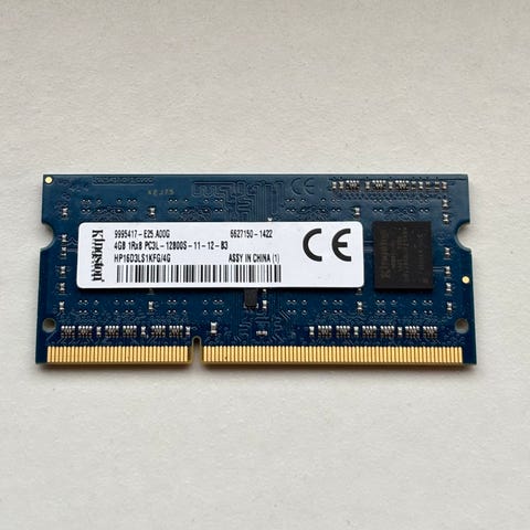 Kingston DDR4 RAM -muistimoduuli, kapasiteetti 4GB, nopeus 1600MHz, standardi SO-DIMM, tarkoitettu kannettaviin tietokoneisiin.