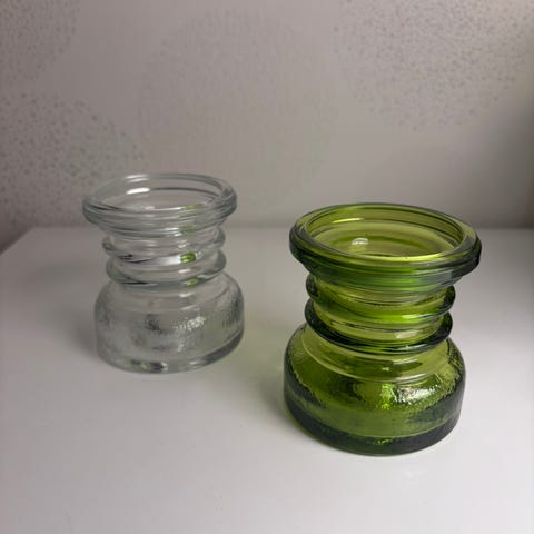 Riihimäen lasin (Tamara Aladin) kirkkaat Carmen kääntömaljakot, korkeudet 14 ja 20 cm, täysin ehjät.