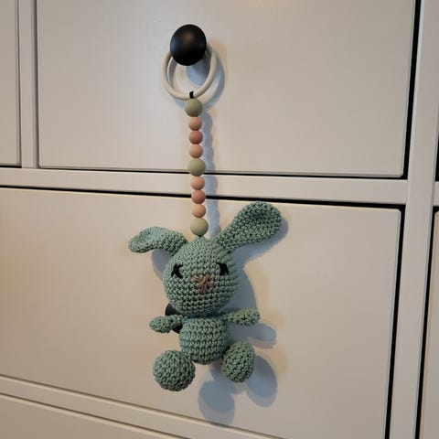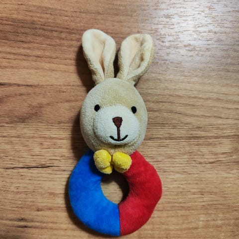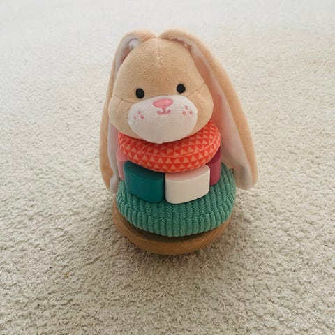 Hape bunny stacker vauvanlelu. Alusta keinuu, ylin rinkula helisee ja alin tärisee kun hännästä vetää. Korvat ovat mukavan pehmoiset edelleen. Siisti kunto. Alkuperäisen paketin saa halutessaan mukaan.