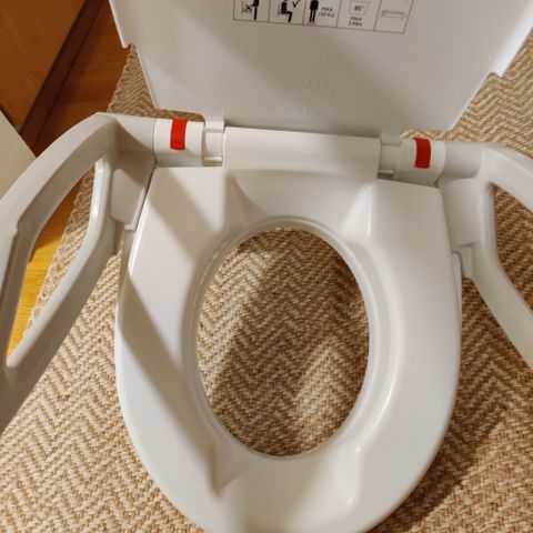 Respectasta ostettu WC-koroke, jossa tukikaiteet molemmin puolin. Istuin on valkoinen. Ollut käytössä muutaman kerran, on kuin uusi.