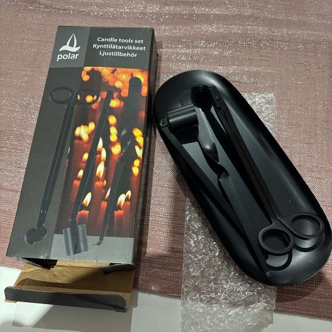 Välineet kynttilöiden tekoon. 1 kg steariini, 3x 5g värijauhe, 6 x sydänlanka ja 2x kynttilämuotti.