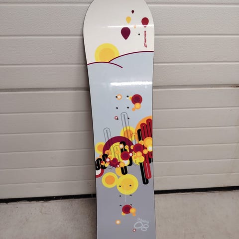 Vanhahko, mutta siisti lauta vielä seuraavalle laskijalle. Kaikinpuolin kunnossa ja on ollut pojalla käytössä vielä viime talvena.