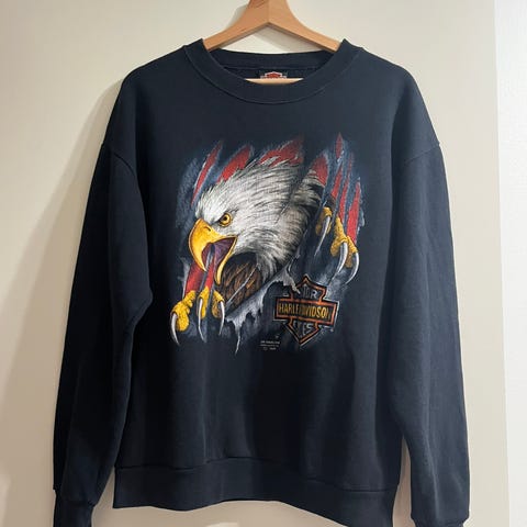 Vintage 1990 3D Emblem Harley Davidson pitkähihainen paita, pusero Made in Usa L