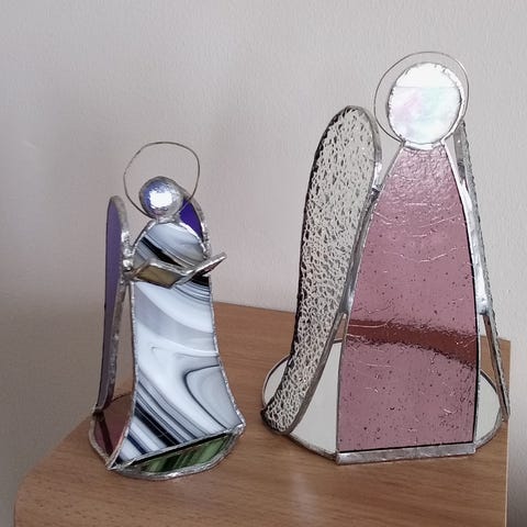 Myydään 3 kpl tiffany enkeli tuikkukippoja. Vaalean punaisella tuikun alta lasi halki, muttei haittaa käyttöä tai näy tuikun alta.