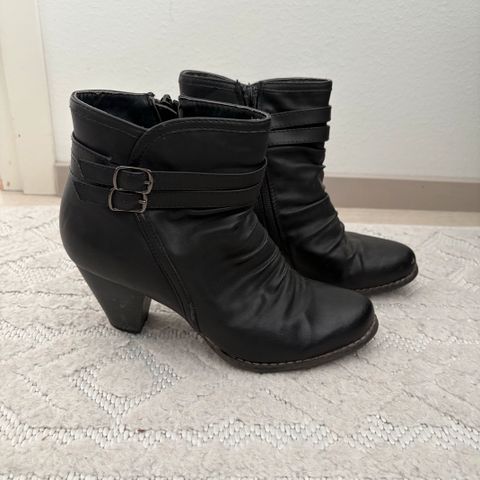 Ruskeat Tapaksen tolppakorkoiset nilkkurit kokoa 39. Pari kertaa käytetty, jäänyt itselle pieneksi. Pinta tuntuu mokka tai nupukkinahkalta, mutta kengän materiaalitarran mukaan kangasta? Pinta näyttää, kuin ajan patinoiva nupukkinahka. Korko noin 6 cm. Tästä syksyyn tai talveen hyvät uudenveroiset kengät.
