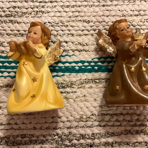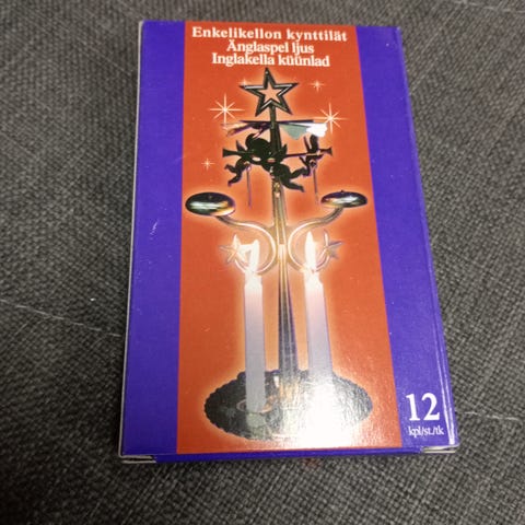 Myydään enkeliaiheisia kippoja. Toinen kapealle kynttilälle ja toinen tuikulle. Yhteishinta 5e