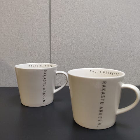 Myydään 2 mukia käyttömättömiä. Vähän kiiltävä pinta.