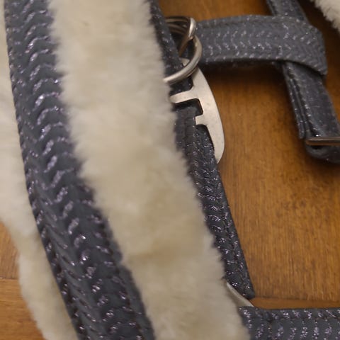Riimu, jossa on musta väri ja pehmeä valkoinen vuori. Valmistettu kestävästä materiaalista. Koko pony. Myynnissä myös muita riimuja.