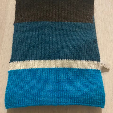 Reima lasten kaulaliina 135 x 15 cm. 50% villaa ja 50% akryyliä. Ei kutittanut meidän herkkäkaulaakaan. En löydy mitään moitittavaa kunnossa.