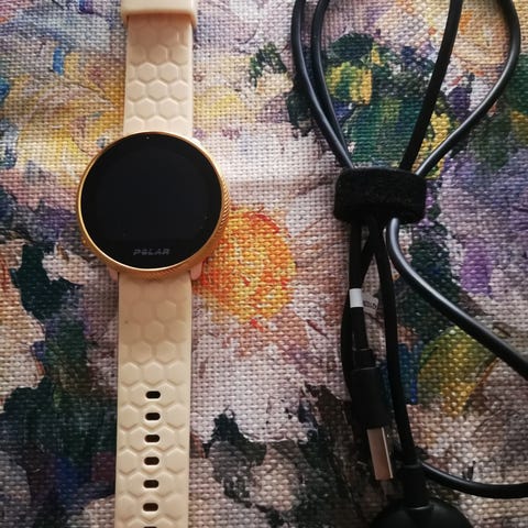 Polar Unisex älykello, beige väri kultaisilla yksityiskohdilla, mukana latauskaapeli,vara ranneke sekä ohjekirja. Kellossa pyöreä näyttö ja silikoninen ranneke. Sopii unisex-käyttöön ja tarjoaa perustoimintoja urheiluun ja arkeen. Lyhyempää rannetta käytetty ja pidempi käyttämätön. Yhteensä kello ollut käytössä noin 3viikkoa. Ei mitään vikoja ei vaan itselle tullut käyttöä, ovh 200€. Tarjoa hintaa!