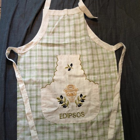 Hyväkuntoinen ja siisti esiliina sekä iso, metallinen säilytyspurkki. Purkin korkeus 18,5 cm ja siinä on kansi. yhteensä 4 euroa, nouto Myllypuro, mobilepay ei käy. tarvittaessa voin tuoda Myllypuron metroasemalle.