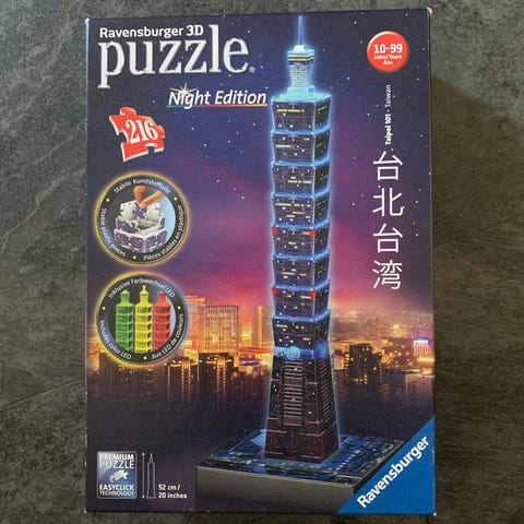 Ravensburgerin 3D palapeli, Eiffel torni Night edition -valoilla.