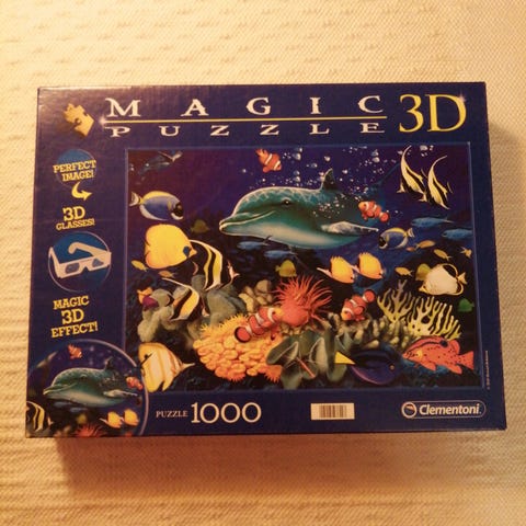 Clementoni Magic Puzzle 3D on 1000 palan palapeli, jossa on meriaiheinen kuva. Uutena ostettu, kerran kasaaminen aloitettu ja jäänyt kesken, joten en ole varma onko kaikki palat tallessa mutta toivottavasti on. Eläimetön talous, nouto ovelta, maksu käteisellä.