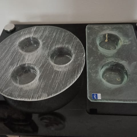 Ylimääräisenä lasiset tuikku kynttilän aluset.