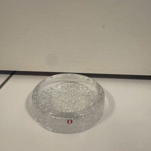 Iittala Timo Sarpaneva Visa, kirkas lasi tuhka- astia/ kynttilä-alusta.Halkaisija on 10,5 cm, korkeus 3 cm