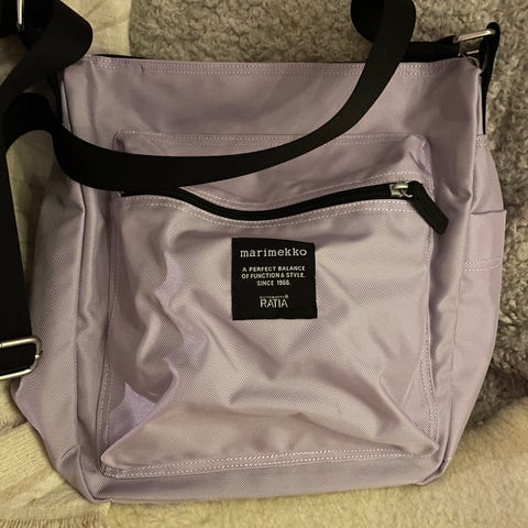 Ihana Marimekon olkalaukku. Tähän mahtuu viikonlopun reissutarpeet läppäreineen hyvin. Ei käytetty.