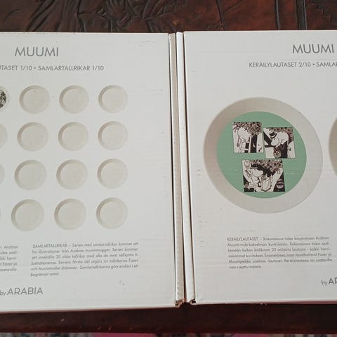 Ostan kirppari hinnoin erilaisia muumilautasia, saa tarjota.