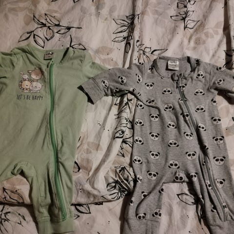 Vauvan unipuvut, koko 62, unisex/tyttö. 3 kpl yöpukuja ja yksi ohutkankainen unipussi.