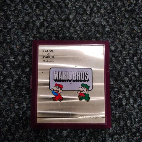 Mario bros pelikonsoli vuodelta 1983,kunto sisältä täydellinen, patterikotelon kansi musta ja etupelti on paperinen,peli toimii täydellisesti ja näytöt selkeät.