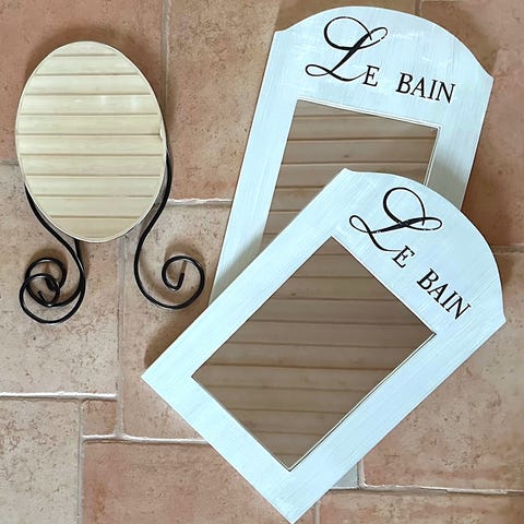 Hyväkuntoinen oranssi meikkipeili retroon sisustukseen.