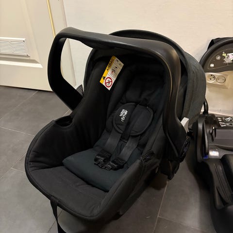 Britax Römer Baby-Safe turvakaukalo mustassa värissä, sopii lapsille 13 kg asti. Mukana turvakaukalon kantokahva, vastasyntyneen pehmuste ja asennusjalusta.