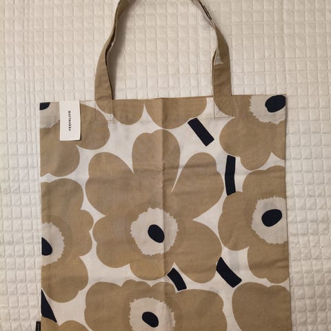 Marimekon uusi ja käyttämätön Unikko-kuosinen kangaskassi. Voi antaa vaikka lahjaksi!