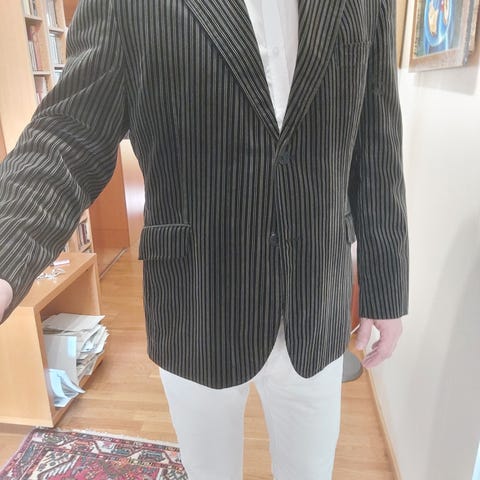 Tyylikäs tummanruskea merkkitakki samettia, merkki 4 You, päällyskangas hengittävää 100 % puuvillaa. Koko 54, sopii normaalille ja tanakallekin ruumiinrakenteelle. Kunto melko hyvä, vaikka sisällä vuoressa noin 10 cm hieman auki ja vuoren alalaidassa lievää kulumaa (ei näy ulospäin), olkapäissä lievää kulumaa. Kuvassa päällä 184 cm/79 kg miehellä, jonka rinnan ympärysmitta noin 100 cm. Myyn laihtumisen vuoksi, ollut minulla noin 88-89 kiloisena sopiva, mutta sopii varmasti minua pidemmälle 190 senttiselle ja yli 90-kiloiselle henkilölle, joten nyt minulle liian suuri. Hinta vain 8 euroa. Nouto Helsingistä myyjän osoitteesta tai Toridiili. Pikainen sovitus ja tarkistus hissin peilistä mahdollinen sopimuksen mukaan. Voit ottaa yhdellä ostolla, yhdessä paketissa ja yksillä torimaksuilla useamman vaatteen, kysy ENNEN OSTOA, saat muut vaatteet esiin hakusanalla ollin vaatteet.