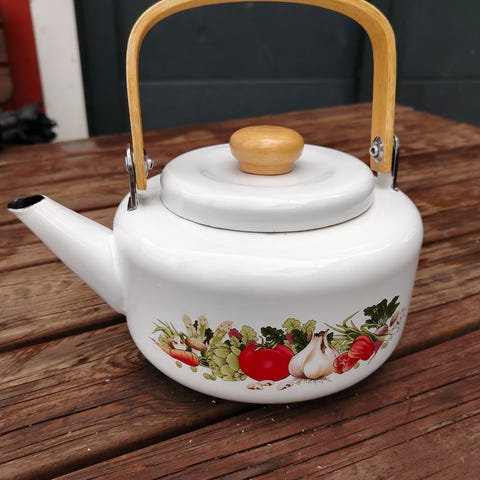 Vanha punainen emalikahvipannu