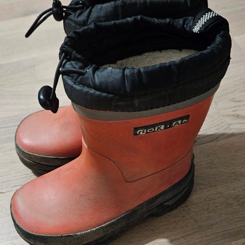 Talvikumpparit. Pehmeä ja pörröinen vielä vuoresta, mutta saappaan yläreunoissa repeämä, joka ei kuitenkaan vaikuta toiminnallisuuteen / vedenpitävyyteen tms. Korjattavissa esim. vahvalla mustalla teipillä tai parsimalla. Ei ole haitannut käyttöä.