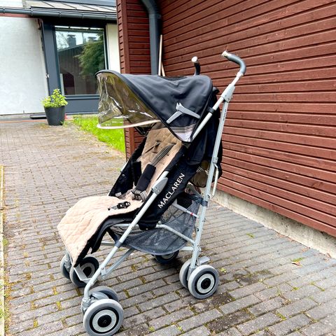 Maclaren matkarattaat musta väri, kevyt ja helposti kokoontaitettava malli. Rattaat soveltuvat päivittäiseen käyttöön ja matkustamiseen. Varustettu säädettävällä istuimella. Materiaali kestävää kangasta, kaupan päälle matka/suojakassi.