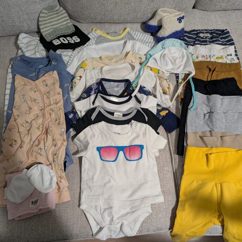 Myydään Lindexin vauvan asu, jossa body ja housut.