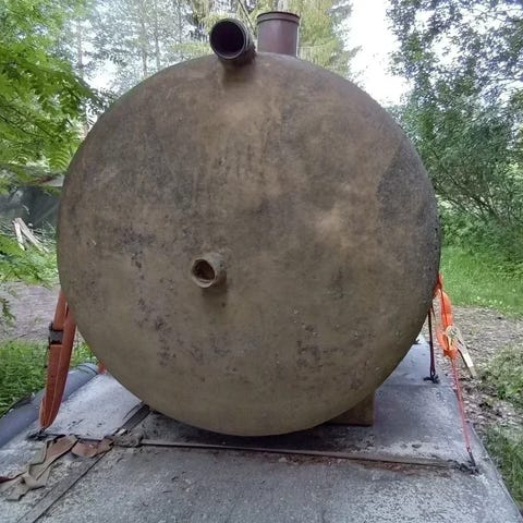 Käytetty Uponorin pullokaivo .ehjä, korjattu muovinhitsaamalla.kyytiin nosto onnistuu.