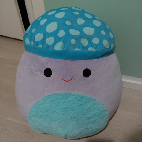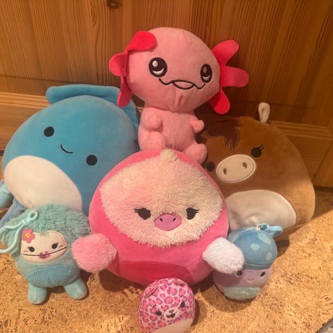 Squishmallows, nalle puh, ihaa ja iso nalle. Mahdollisista tahroista kuvat, ei ole yritetty pestä.