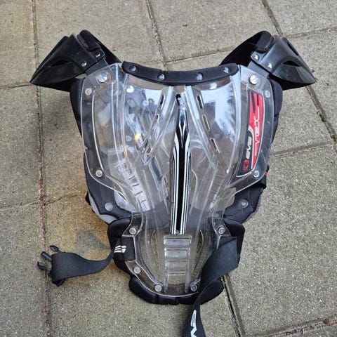 Käytetty siistikuntoinen motocross ja enduro rintapanssari. Koko L-XL.
