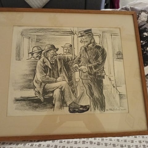 Juho Rissanen piirustus vuodelta 1899, esittää miehen profiilikuvaa. Piirustus on musteella tai lyijykynällä tehty luonnos, jossa näkyy yksityiskohtainen kasvonpiirteiden ja hiusten kuvaus.