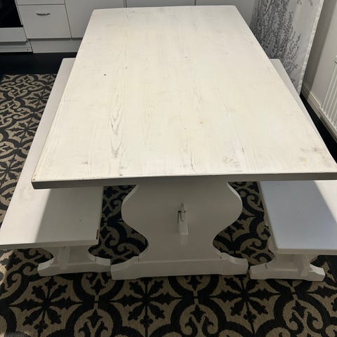 Myydään hyväkuntoinen kuin uudet pirttipöydän kalusteet ja 140cm pitkä.