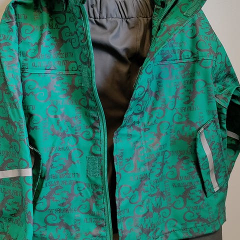 Myydään hyväkuntoinen vaaleanpunainen sadetakki ja kahdet sadehousut, joista toisissa on suloinen kettukuviointi. Kettuhousuista puuttuu toinen jalkalenkki.