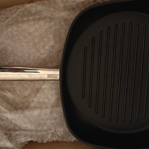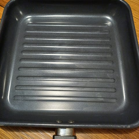 IKEA grillipannu, valmistettu valuraudasta, mitat 28x28 cm. Musta väri. Soveltuu ruoan paistamiseen ja grillaukseen keittiössä.