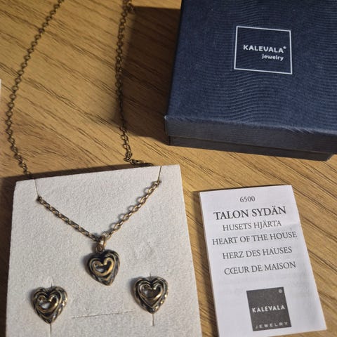 Kalevala Korun pronssiset Talon sydän kaulakoru ja korvakorut