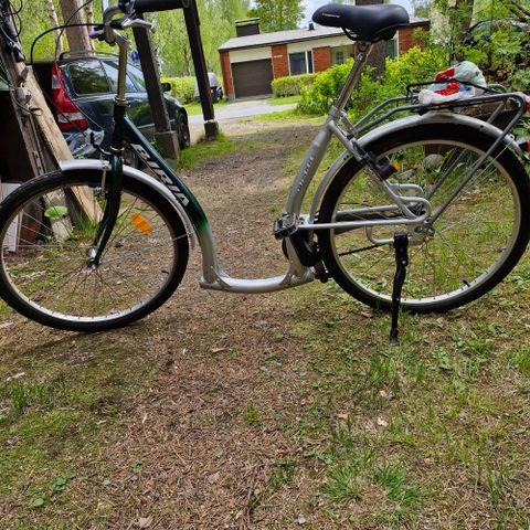 Nastarenkailla varustettu Tunturi, 7 vaihteinen shinamon vaihteisto, uudet valot edessä ja takana, etukori, alkuperäinen lukko + avain, ohjekirja, huollettu, valmis ajoon.