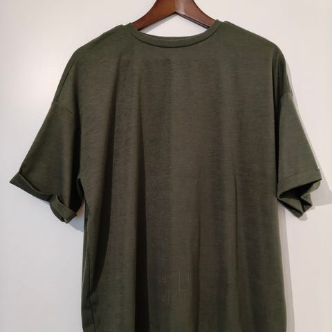 Kaulukset ja helma ommeltu kiinni paitaan, takana 1 nappi.