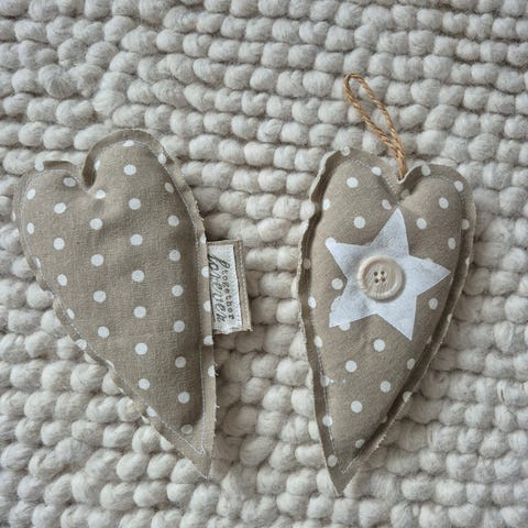 Metalliset koristesydämet. Ripustuskoukut, voi laittaa roikkumaan. 2kpl yhteensä 3e.