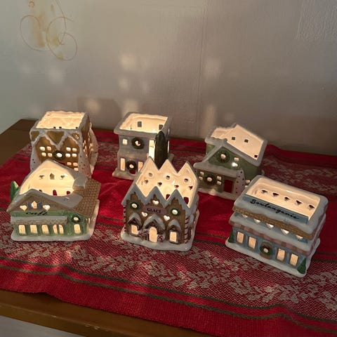 Neljä harvinaista ja kaunista Partyliten joulukoriste somistetta tuikkukynttilälle.