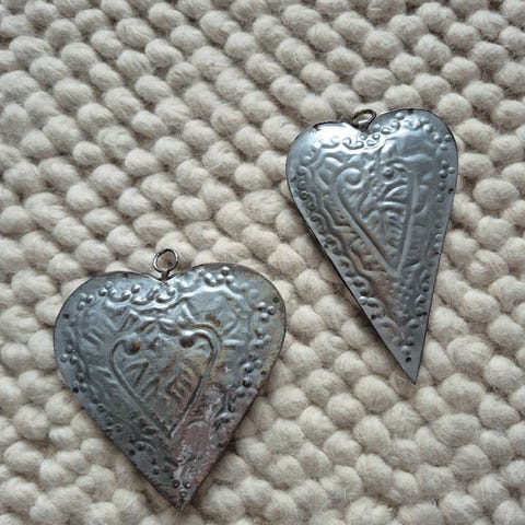Koristesydämet. Toisessa ripustusnaru. Hinta yhteensä 3e.