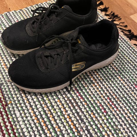 Vähällä käytöllä olleet mustat kangas Skechers tennarit. Memory foam pohjallisilla.Koko 45.