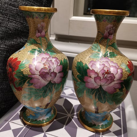 Cloisonnee, maljakkopari