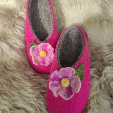 Käsin tehdyt 100% villasta lämpöiset ja kevyet huopatossut, sisämitta 24 cm. Kiva lahja! Haku tai postitus maksulla