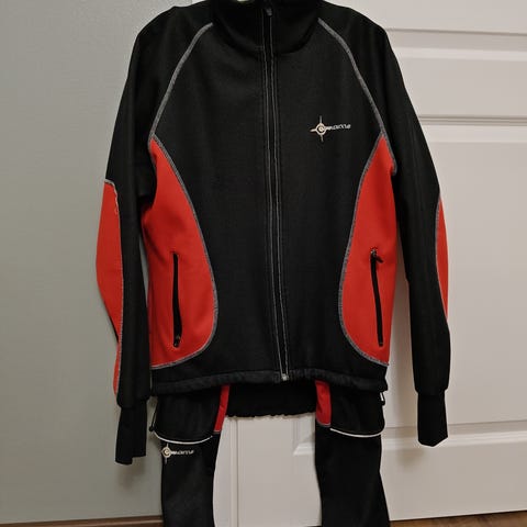 Hyväkuntoinen hiihtoasu. Lahkeissa vetoketjut. Sijaitsee Puijonlaaksossa. Koiratalous.