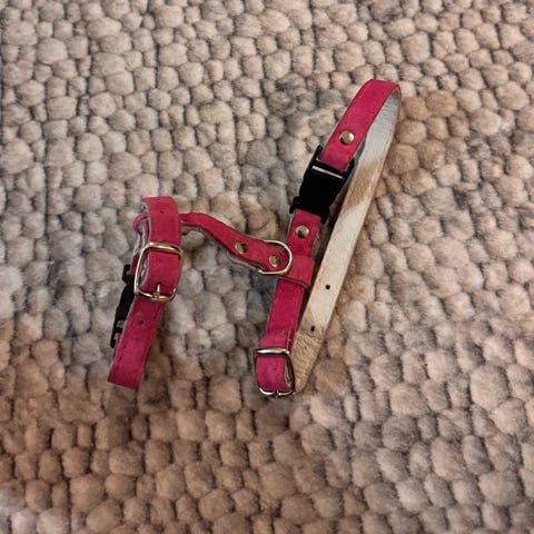 Myydään tarpeettomana pois kissan/pienen koiran valjaat.